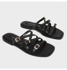 نعال مسطح ذو تصميم عصري، مقدمة مربعة , سهل الإرتداء، ويمكن تنسيقه مع إطلالات مختلفة