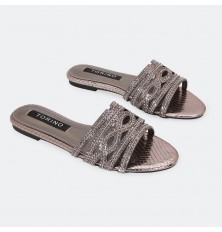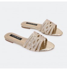 ZX2982 نعال مسطح شيك مزين بحبات من الستراس
