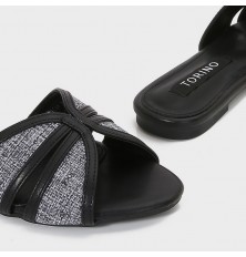بتصميم أنيق وعملي نقدم لكِ هذا النعال من تورينو، مقدمة مستديرة بنقشة مميزة, متوفر بألوان أساسية ضمن تشكيلة أحذيتك