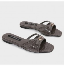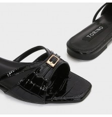 نقدم لكِ هذا النعال المسطح من تورينو،تصميم أنيق بنقشة جلد الأفعى، مناسب للإستخدام اليومي