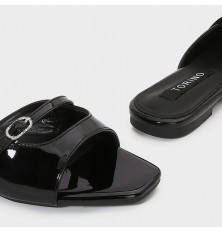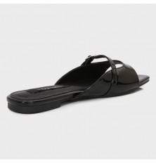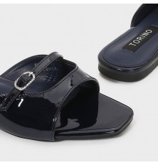 يُعد هذا النعال خيار مثالي لإطلالتك اليومية , تصميم أنيق من الجلد الصناعي اللامع, ذو مقدمة مربعة مع إبزيم أمامي مدعم لراحتك، يمكن تنسيقه مع خيارات متعددة