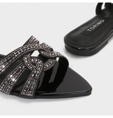 أضيفي لمسة من التألق لإطلالتك اليومية مع هذا النعال, بتصميم عصري لامع مرصع بالستراس, سهل الإرتداء، متوفر بألوان أساسية