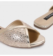 يجمع هذا النعال بين الراحة والأناقة, بتصميم جذاب ذو مقدمة مستديرة مزين بالستراس, مناسب للإستخدام اليومي