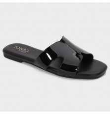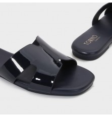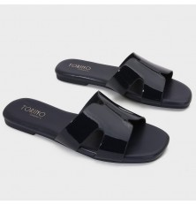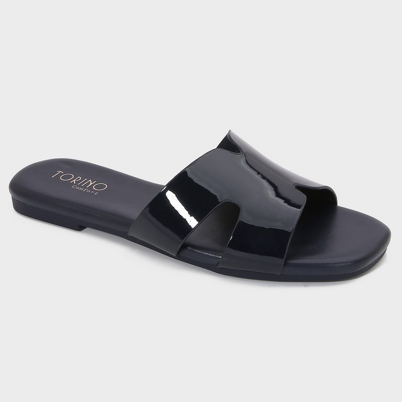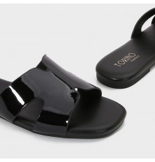 لا غنى عن هذا النعال ضمن تشكيلة أحذيتك، ذو مقدمة مفتوحة لامعة، يمكن تنسيقه مع إطلالات مختلفة