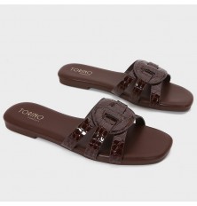 OX3222 نعال مسطح عصري بنقشة جلد الأفعى