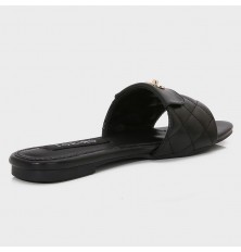 يُعد هذا النعال خيار مثالي لإطلالتك اليومية , تصميم مميز كاجوال مزين ببروش ذهبي, سهل الإرتداء يمكن تنسيقه مع خيارات مختلفة
