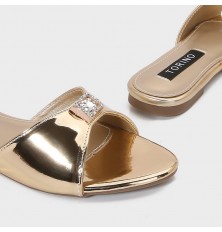ZX3158 نعال مسطح لامع مزين بإكسسوار