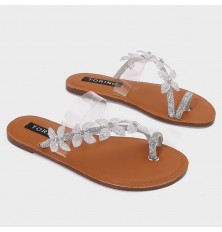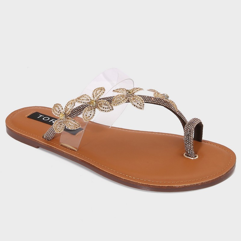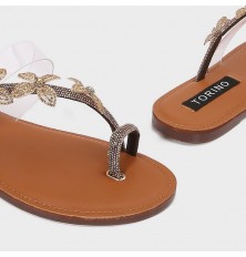لا غنى عن هذا النعال ضمن تشكيلة أحذيتك، ذو حلقة إصبع مع حبل من الكريستال المزين بفراشات ، مناسب لكافة الأوقات