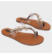 ZX3189 نعال مسطح ذو حلقة إصبع مزين بفراشات