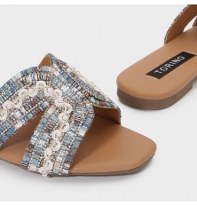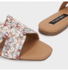 استمتعي بإطلالة أنيقة ومريحة مع هذا النعال من تورينو، ذو مقدمة مزخرفة بتطريز فاخر ونقوش متعددة الألوان
