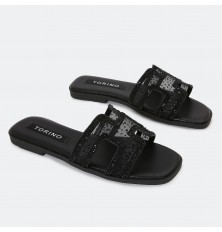 نقدم لكِ هذا النعال من تورينو، ذو تصميم عصري بجزء من التول مزين بالستراس , متوفر بألوان يمكن تنسيقها مع إطلالات مختلفة