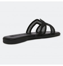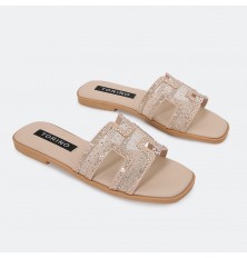 XZ3244 نعال مسطح بجزء من التول مزين بالستراس