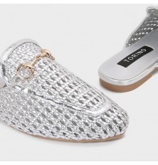 ZXB38 نعال مسطح بمقدمة مغلقة مزين بإكسسوار