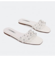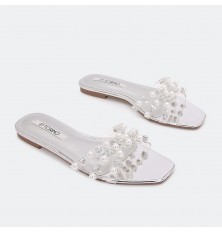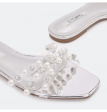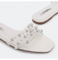نعال تورينو شفاف مزين بحبات اللؤلؤ وكرات براقة