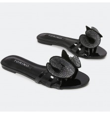 نعال فلات بتصميم جذاب مزين بفيونكة كبيرة من الأعلى مرصعة بالستراس, يوفر لكِ الراحة و الأناقة كما أنه مناسب لجميع الأوقات