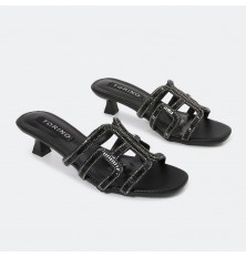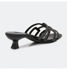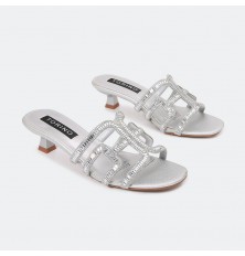 نعال كعب 3 سم , بتصميم مميز مزين بالستراس ومفرغ من الجوانب , و أرضية مريحة للإستخدام اليومي