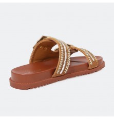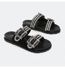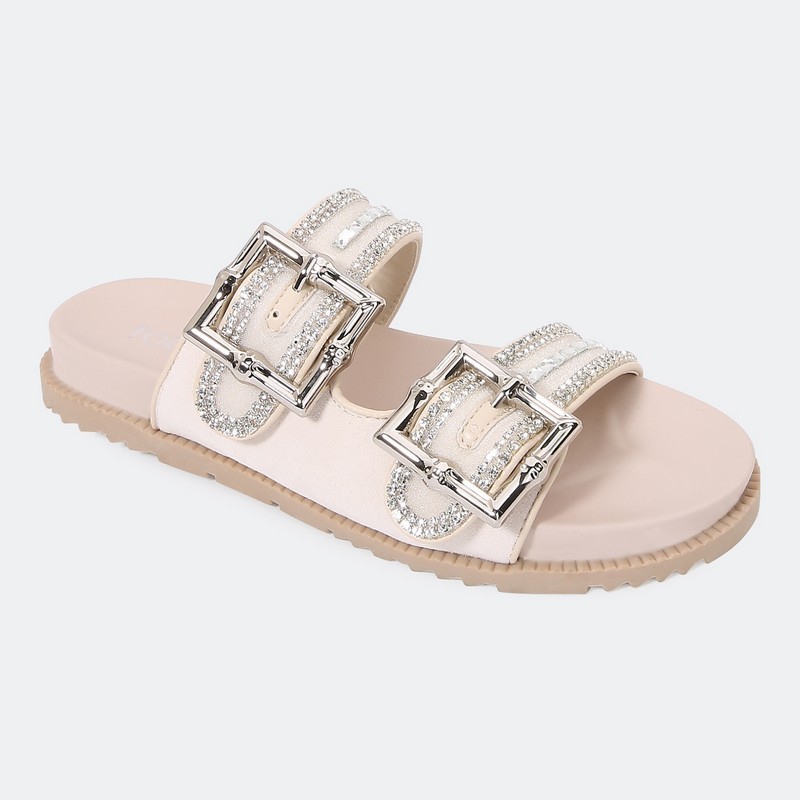لراحة طوال اليوم نقدم لكِ هذا النعال من تورينو , تصميم عصري بحزامين ومزين بالستراس , مناسب للإستخدام اليومي