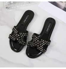 ZX2574 نعال مسطح أنيق مزين بأحجار لامعة