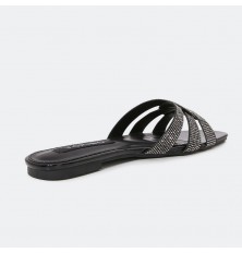 أضيفي الأناقة لإطلالتك اليومية مع هذا النعال , بتصميم شرائط متشابكة مرصعة بالستراس , و أرضية مريحة