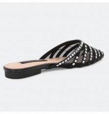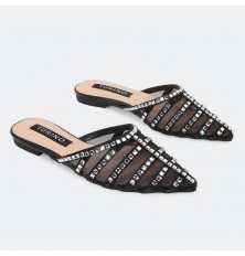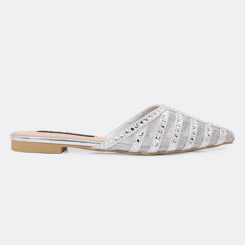 لا غنى عن هذا النعال في مجموعة أحذيتك , بتصمبم أنيق بجزء من التول مرصع بأحجار لامعة صغيرة مغلق من الأمام , مريح ومناسب لكافة الأوقات