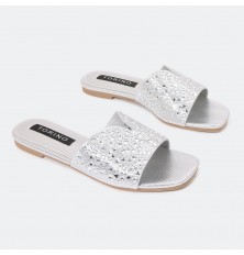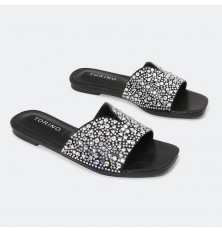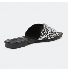 نقدم لكِ هذا النعال المسطح ذو مقدمة مربعة , مزين بالستراس ويمكن تنسيقه مع خيارات مختلفة