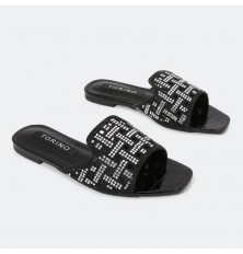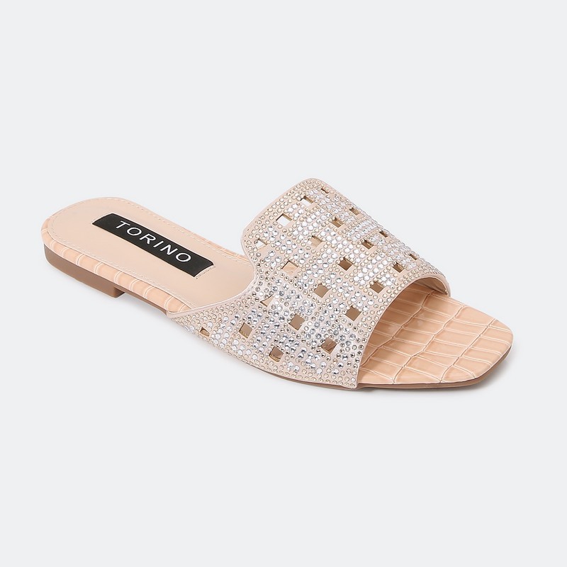 نقدم لكِ هذا النعال من تورينو , ذو تصميم مزخرف مزين بحبات الستراس , مناسب للإستخدام اليومي