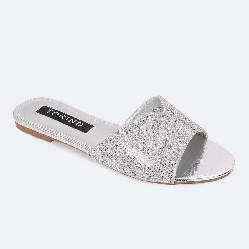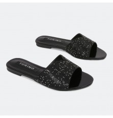 نقدم لكِ هذا النعال المسطح من تورينو , ذو تصميم جذاب مزين بحبات الستراس اللامع , مناسب للإستخدام اليومي