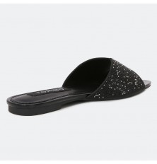 ZX2641 نعال مسطح من الجلد الاامع مزين بحبات الستراس