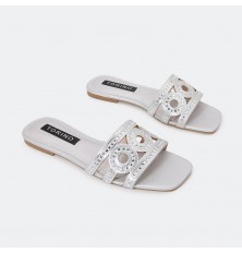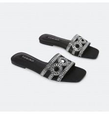 ZX2647 نعال مسطح ذو مقدمة مربعة مزين بالستراس