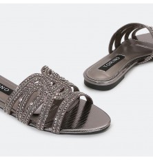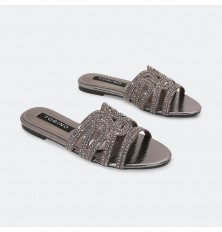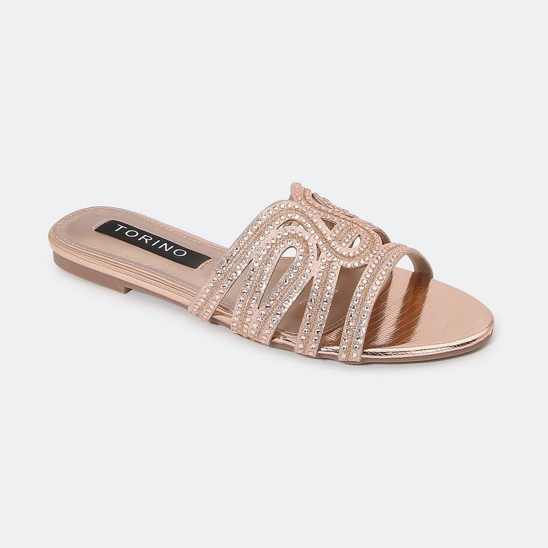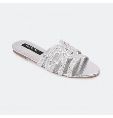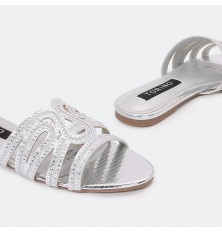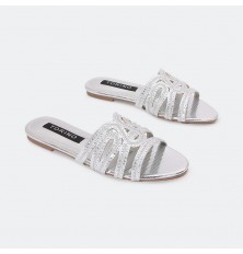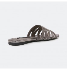 نعال مسطح ذو تصميم عصري مزين بالستراس , سهل الإرتداء ويمكن تنسيقه مع إطلالات مختلفة