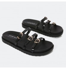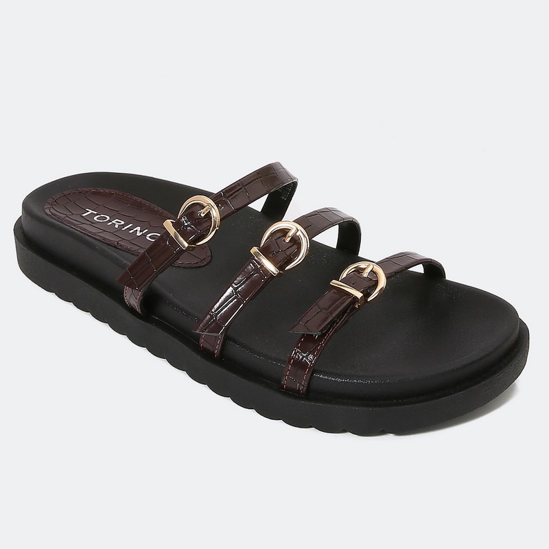 نقدم لك هذا النعال من تورينو، ذو تصميم ناعم بثلاث أحزمة مع قفل، سهل الارتداء، مع أرضية مريحة، ألوان كلاسيكية. مناسب للاستخدام اليومي