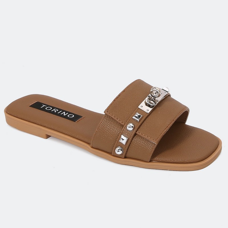 نقدم لك هذا النعال من تورينو، ذو تصميم ناعم ومريح مع ابزيم أمامي مدعم لراحتك مزين باكسسوار، مناسب للإطلالتك اليومية