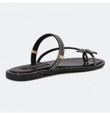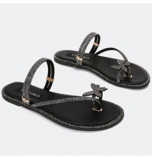 لا غنى عن هذا النعال ضمن تشكيلة أحذيتك، مقدمة مستديرة مزودة باصبع مع حبال من الكريستال مزينة بفراشة ، مناسب لكافة الأوقات