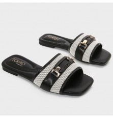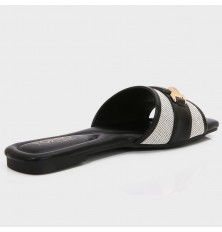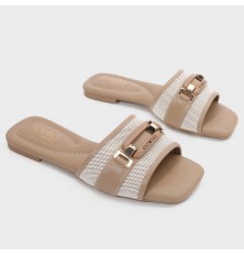 نقدم لكم نعال مسطح ذو تصميم جذاب بمقدمة مفتوحة مربعة, مريح ومناسب لكافة الأوقات