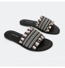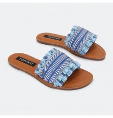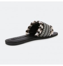 نقدم لكم نعال مسطح ذو تصميم جذاب بمقدمة مفتوحة مستديرة بخامة من القماش الأنيق, يمكن تنسيقة مع خيارات مختلفة