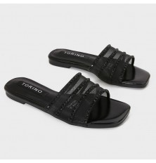 تألقي مع هذا النعال من تورينو , تصميم فخم بجزء من التول المزين بالستراس ، متوفر بألوان كلاسيكية، مناسب لكافة الأوقات