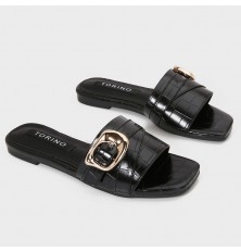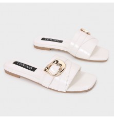 نعال فلات مريح وعملي، ذو تصميم أنيق بنقشة جلد الأفعى, مع إبزيم أمامي مزود بفقل ذهبي، متوفر بألوان لا غنى عنها