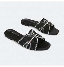 ZX2929 نعال مسطح بجزء من التول المزين بالستراس