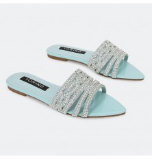نعال مسطح ذو تصميم عصري، مقدمة مدببة مزينة بالستراس, سهل الإرتداء، ويمكن تنسيقه مع إطلالات مختلفة