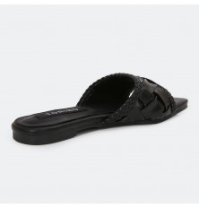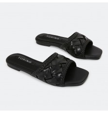 يقدم لك متجر تورينو نعال مسطح، بتصميم عملي وأنيق من الجلد الصناعي ، ذو مقدمة مربعة، ألوان كلاسيكية يمكن تنسيقه مع خيارات مختلفة