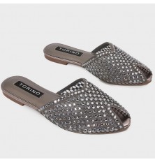 تألقي مع هذا النعال المسطح من تورينو، تصميم أنيق بجزء من التول المرصع بالستراس البراق, متوفر بألوان لا غنى عنها
