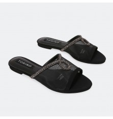 تألقي مع هذا النعال المسطح من تورينو، تصميم أنيق بمقدمة من التول المزين بحبل من الستراس , متوفر بألوان لا غنى عنها