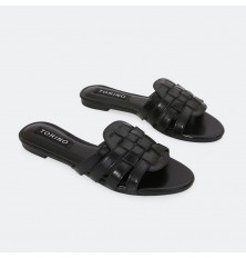 نعال تورينو مسطح لإطلالة أنيقة، بتصميم عصري بخامة من الجلد الصناعي، كما أنه خيار مريح وعملي وملائم لجميع احتياجاتك