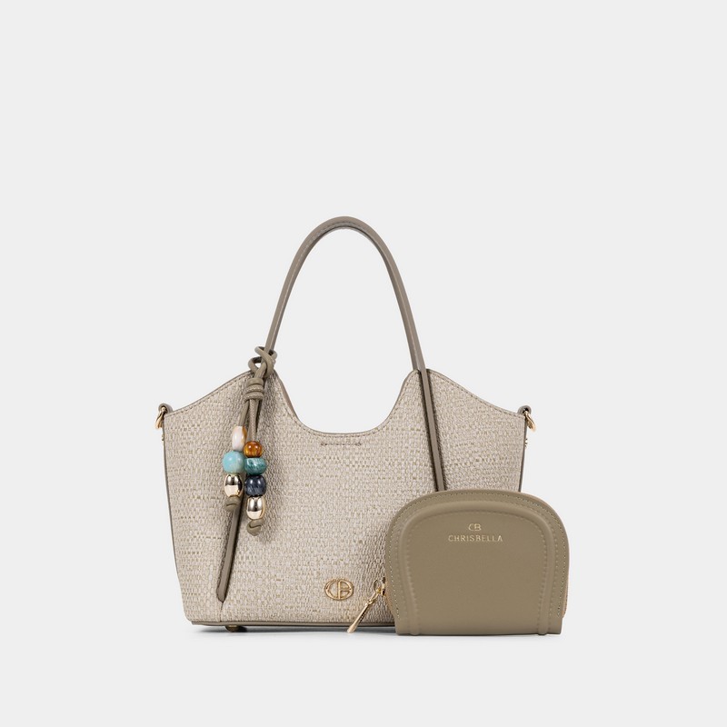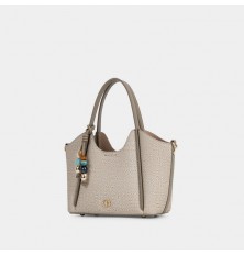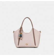 Trendy women's handbag, padded on the inside with a zipper closure and buckle, available in multiple colors with a stylish design, decorated with delicate accessories.