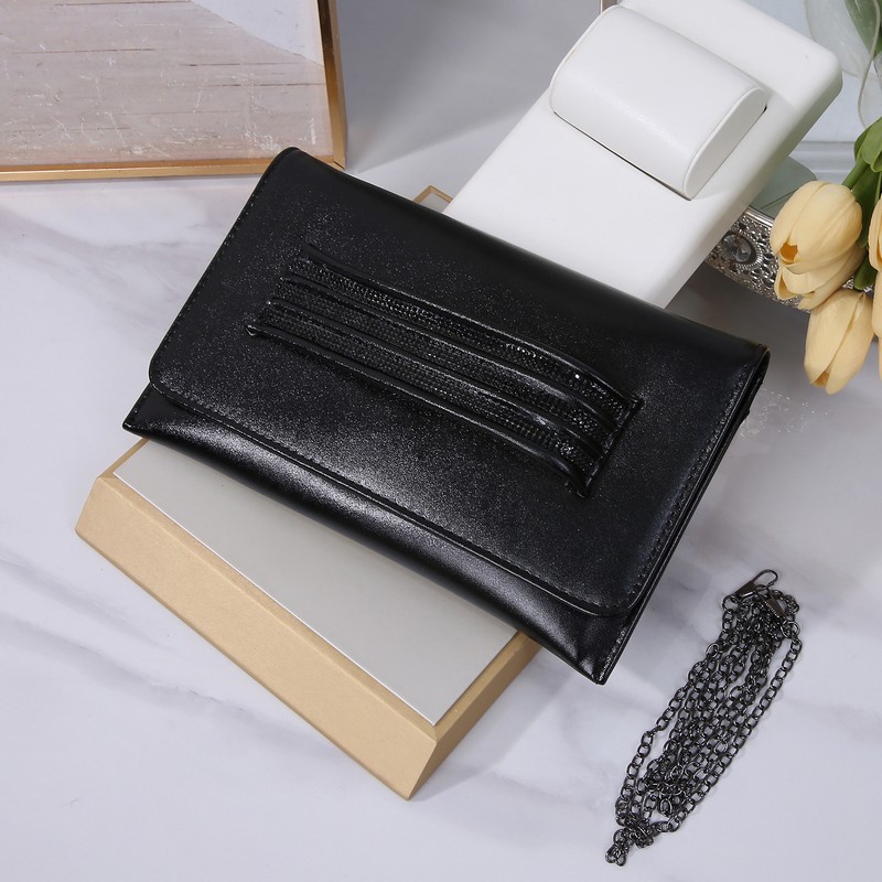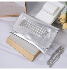 Shiny crystal embellished evening bag with detachable chain, available in colors that can be coordinated with different looks, suitable for parties