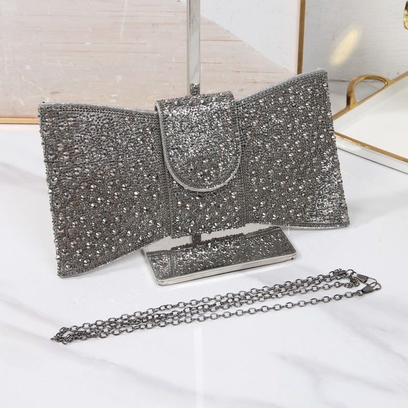 This sparkling bag is indispensable in your wardrobe, elegantly designed with shiny stones and a chain, suitable for parties.