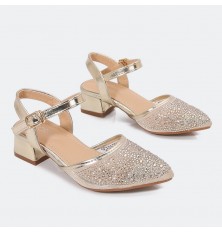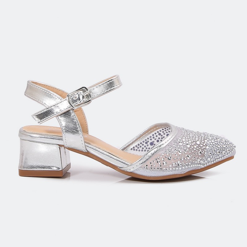 Turin sandals with 3 cm heels, luxurious design with a part of tulle decorated with shiny strass, with front buckle closure, choose the distinction for your little one