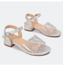 Introducing these sandals from Turin for your little one's look, with an open toe with a transparent part decorated with strass, with a heel of 2 cm, that can be coordinated with different options