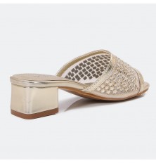 GML867 Tulle Panel-Part Square Toe Heel Slippers