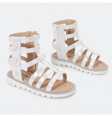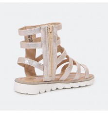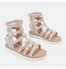 Girls' flat sandal with a shiny leather leg designed in a modern and distinctive way, with a side zipper for closure, and a reinforced sole for your child's comfort. Buy it now from Torino.